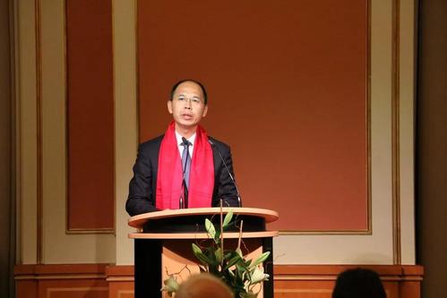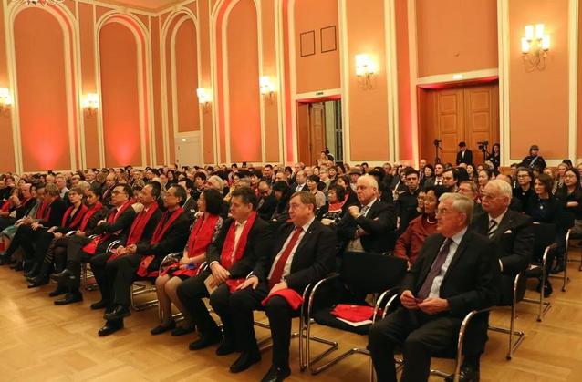 中国驻德国大使馆公使张军辉在当晚的致辞中指出,除了政治与经贸领域之外,中国与德国近年来双边文化交流也非常活跃,务实合作成果丰硕,尤其在当代文化艺术领域的交流亮点频出,中德旅游合作市场规模庞大,发展前景广阔:“1月25日,我们将迎来中国的新年——春节。2020年是中国农历‘金鼠年’。在中国,‘鼠’虽然体型最小,却排在十二生肖的第一位,寓意聪明机智、生命力顽强。与此同时,2020年也意味着21世纪从此跨入20年代,所以让我们一起展望新的一年、展望新的十年,祝愿中德合作不断深化,两国人民友谊历久弥新!”