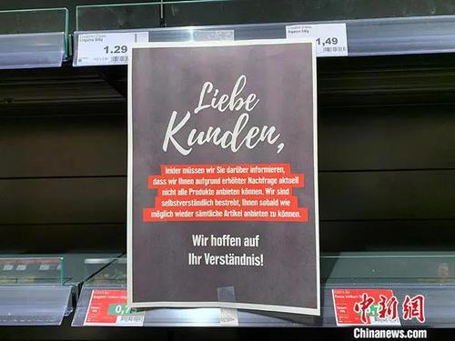而针对超市出现食品短缺的说法,德国农业部长克勒克纳当天强调,当前在德国不存在供给短缺。她呼吁公民避免抢购和囤积物资。