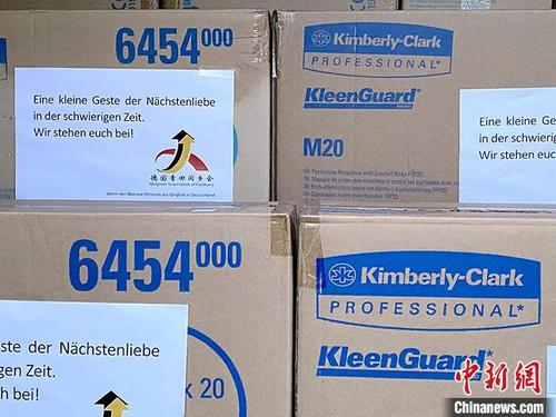 图为捐赠的防疫用品。中国驻杜塞尔多夫总领馆 供图