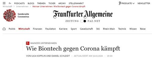 总部位于德国莱法州美因茨市的生物技术公司BioNTech正在开发针对新冠病毒的疫苗。该公司将与中国医药巨头复星医药一起,于4月底开始首次临床人体试验。不过根据BioNTech的公告,这一试验仍需等待官方批准。此外,该公司还计划为已经确诊感染者提供药物。