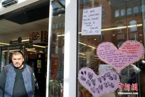 当地时间3月18日,柏林一家坚持营业的超市门口被顾客贴上了表达感谢的卡片。中新社记者 彭大伟 摄