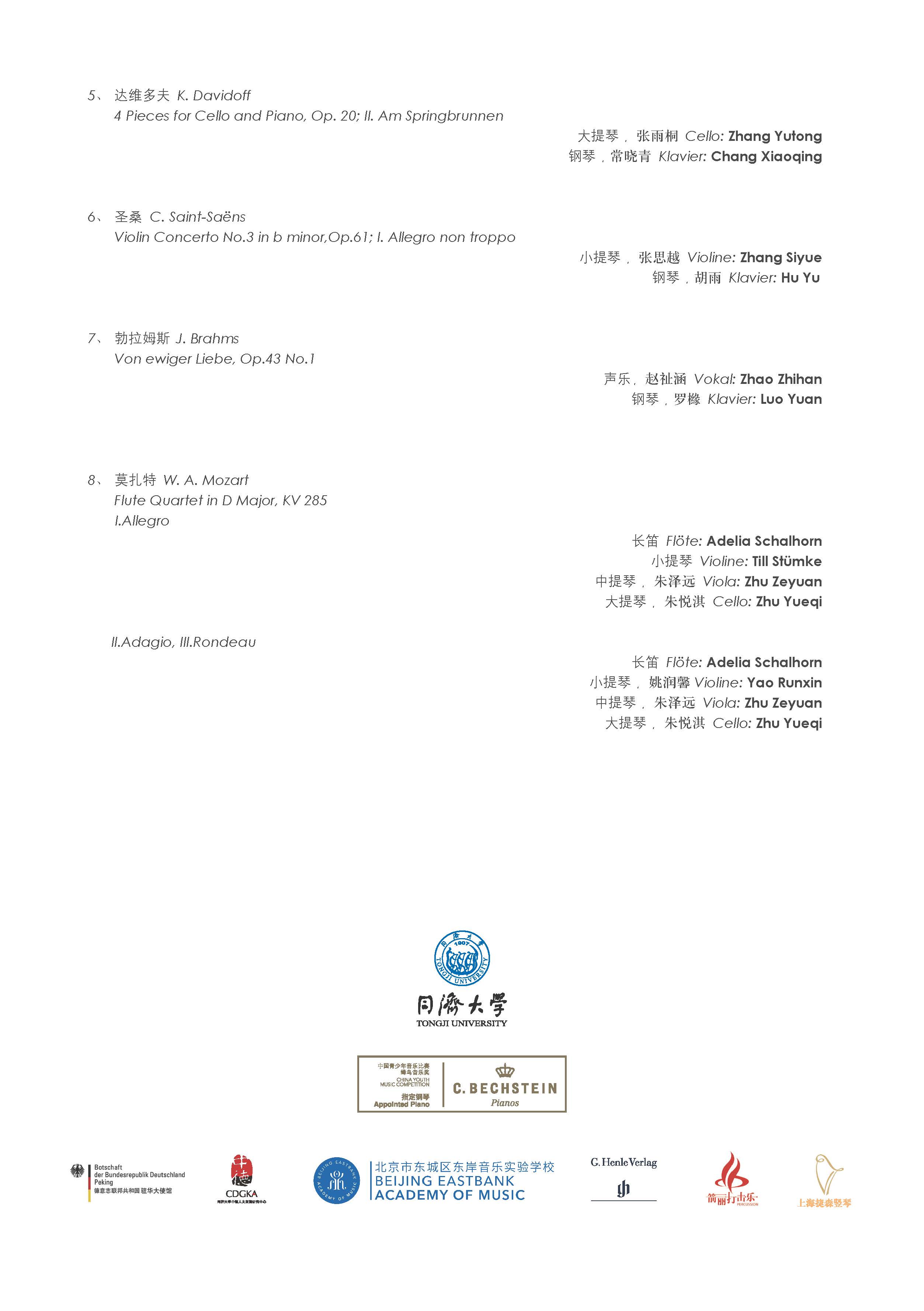Aufführende: Preisträger von CYMC (China Youth Music Competition · Hummingbird Music Awards) und „Jugend musiziert“